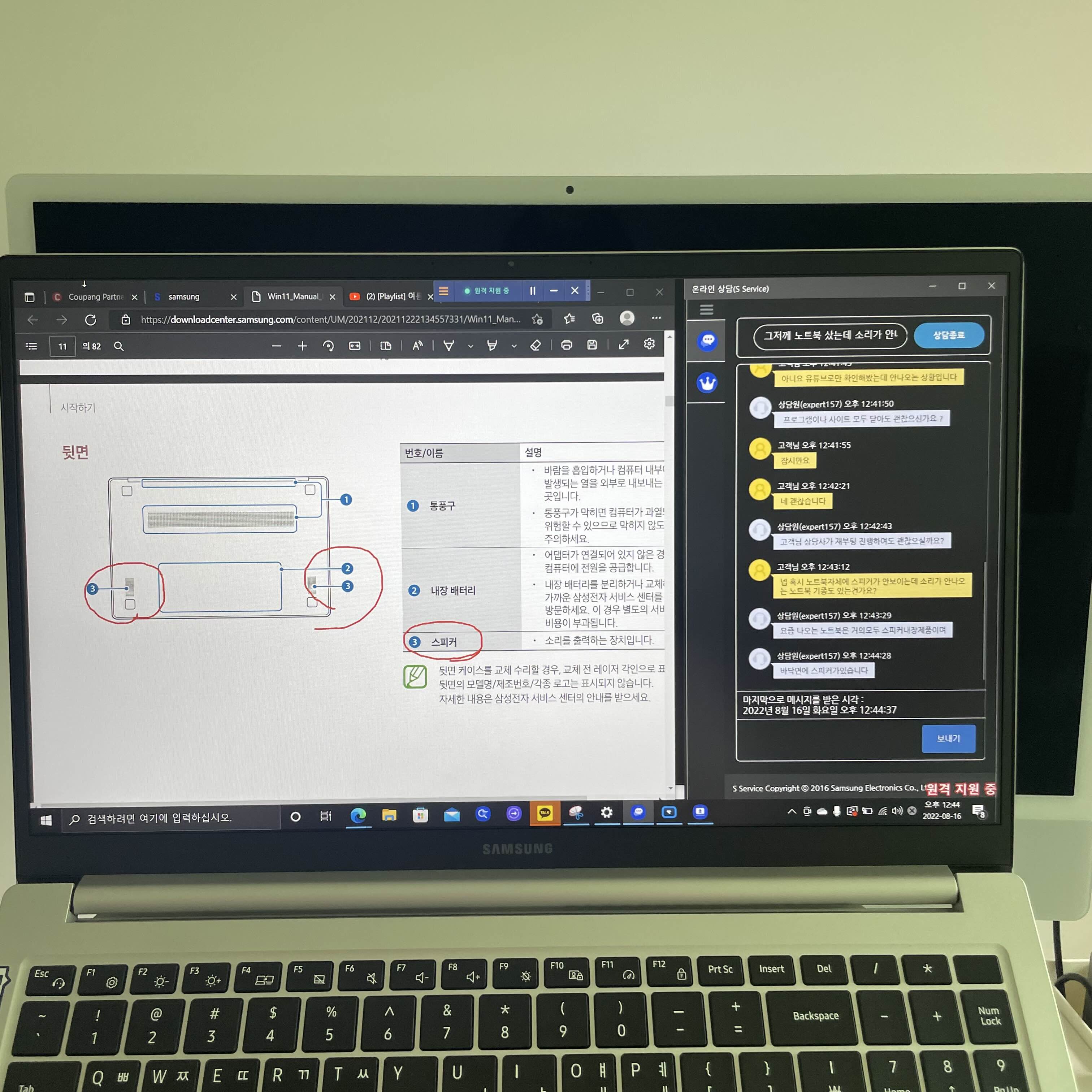 그랬더니 원격으로 제 노트북 설명서(?) 같은 걸 열어서 노트북이 어디 내장되어있는지 바로 표시해주시더라구요.