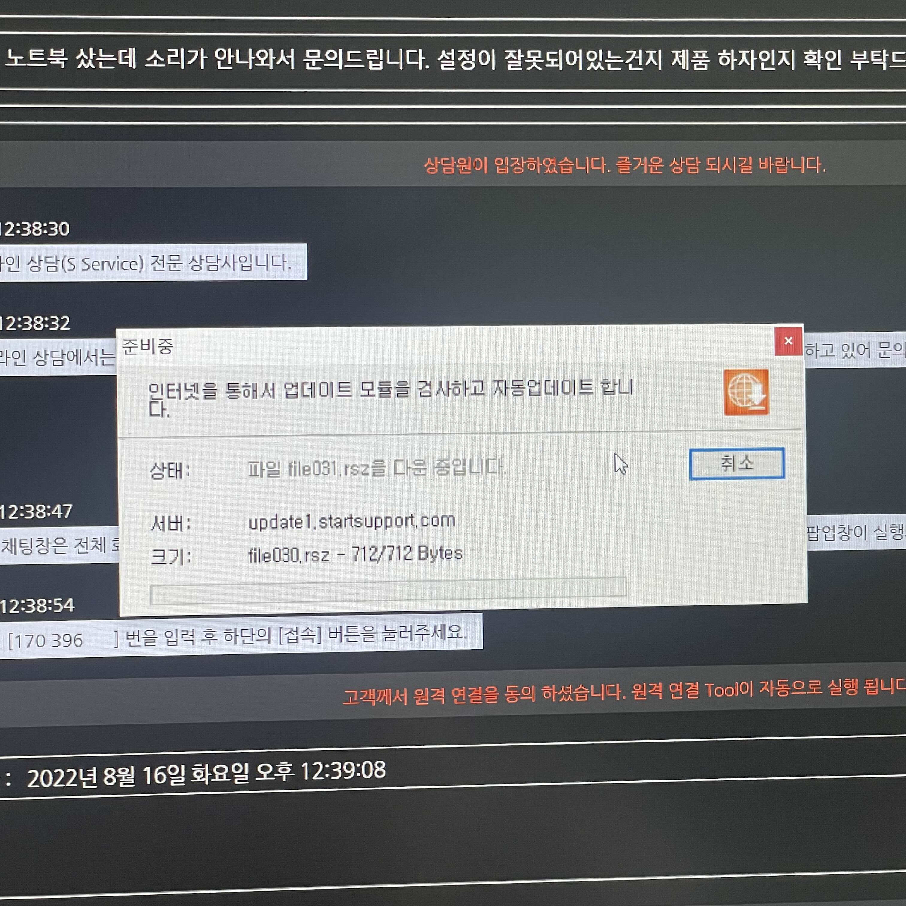 어떤문제가 있는지 채팅으로 설명했더니 바로 원격으로 확인해주신다고 하시더라구요