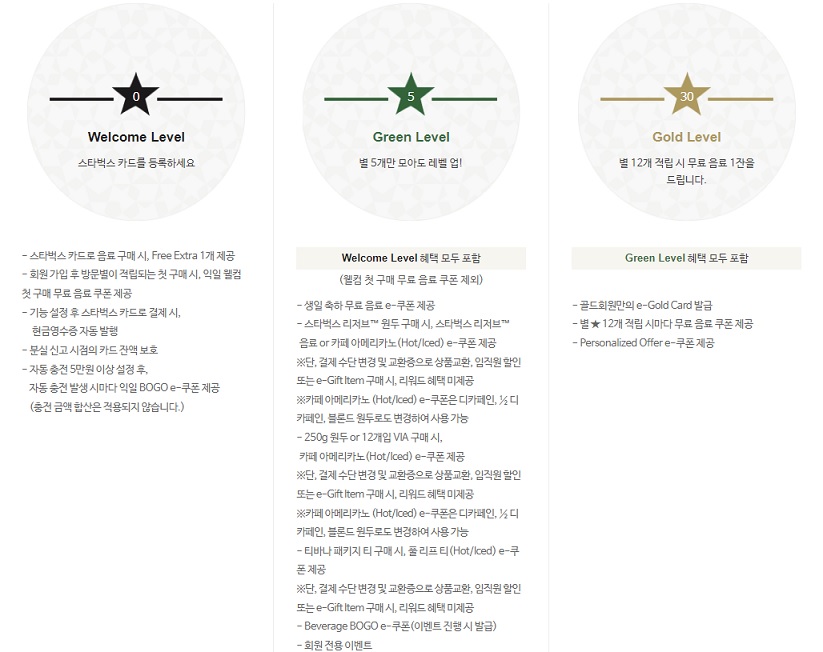 스타벅스는 레벨을 통한 혜택이 나눠져있습니다.